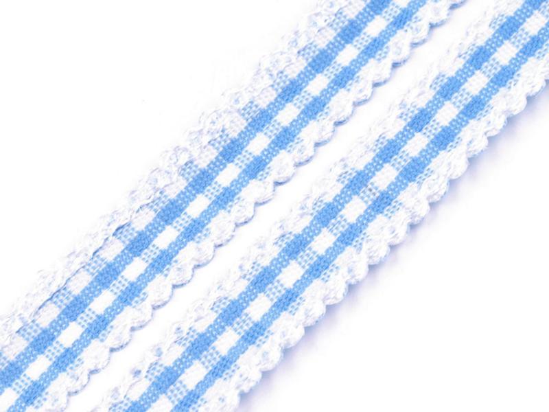 Mobile Preview: Karoband mit Häkelspitze blau