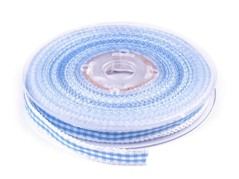 Karoband mit Häkelspitze blau