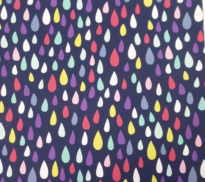 Für Groß und Klein, für Mädchen und Jungs Ein toller Wasser- und Windabweisender Polyesterstoff mit bunten Regentropfen